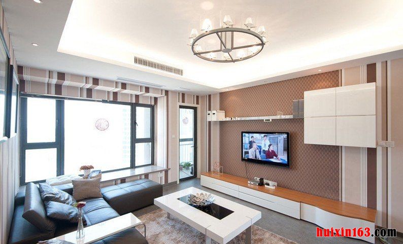 本案所示是安徽省合肥市85平米二居室现代简约风格装修效果图,预算为3万,工程类型半包。此套设计极为重视运用装饰造型对各个职能空间或区域空间进行协调搭配处理,总体设计理念定义为现代简约。在实际操作过程中,设计师充分依托空间和户型的优势,利用各种具备功能性和舒适性相互照应的造型款式装饰,对整个案例的装修设计产生了重要影响。客厅方面,到处呈现出长方形线条的极致勾勒,比如黑色的真实沙发,白色的茶几,原木色混合乳白色的电视柜,电视柜上方的功能性设计——置物架和置物柜等等,都是方形的线条对各个家具配饰进行刻画,实用价值得以体现的同时,又一起为整个客厅空间的造型美感起到了重要作用。顶棚的中间凹陷部分,是整个空间最大的方块造型,如此突出的线条造型,给整个设计的简约理念注入了源源不断的动力,使得此案彰显挥洒自如、淡然如故的气质。