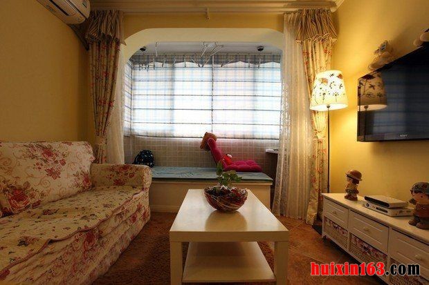 本案所示是安徽省合肥市天一大厦————天天公寓46平米一居室田园风格装修效果图,预算约为1万,工程类型为半包。此套设计的整体基调为米黄色,暖色调的总体协调使得整个案例彰显温馨舒适的居家美感格外强烈,与其它田园风格的装修案例不太一样的地方在于,此案例的色彩较为丰富多彩,在具体操作过程中,也使用了较多的手段进行整体气氛的掌控。设计师巧妙的运用了这些色彩的合理搭配,以及层次鲜明的格局划分,虽然只有一居室的空间,但是经过设计师周密布局,案例从效果上看来没有丝毫的拥挤和狭小,相反,更加让人觉得清新亮丽、自然可爱。开放式厨房的打造,充分的利用了空间。碎花布艺沙发配合复古砖和黄色的墙面,暖间将整个田园风情的气质表现的淋漓尽致。