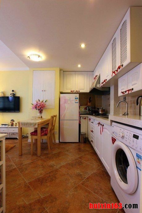 本案所示是安徽省合肥市天一大厦————天天公寓46平米一居室田园风格装修效果图,预算约为1万,工程类型为半包。此套设计的整体基调为米黄色,暖色调的总体协调使得整个案例彰显温馨舒适的居家美感格外强烈,与其它田园风格的装修案例不太一样的地方在于,此案例的色彩较为丰富多彩,在具体操作过程中,也使用了较多的手段进行整体气氛的掌控。设计师巧妙的运用了这些色彩的合理搭配,以及层次鲜明的格局划分,虽然只有一居室的空间,但是经过设计师周密布局,案例从效果上看来没有丝毫的拥挤和狭小,相反,更加让人觉得清新亮丽、自然可爱。开放式厨房的打造,充分的利用了空间。碎花布艺沙发配合复古砖和黄色的墙面,暖间将整个田园风情的气质表现的淋漓尽致。